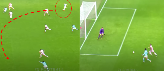 De Bruyne engrana la máquina goleadora del City, pues golpea la pelota con ambos pies. El belga realiza diferentes movimientos y, es un gran pasador y centrador. Sabe driblear, realiza tiros a distancia y es confiable en táctica, maniobrando la pelota de izquierda a derecha, de derecha a izquierda, frente a cualquier arquero. Debido a su propia naturaleza del juego, el jugador realiza movimientos bruscos y continuos del cuerpo, lo cual le ocasiona lesiones importantes. Una lesión en una parte del cuerpo que no es fácil de sanar, requiere atención especializada.