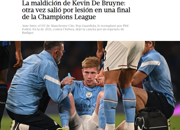 De Bruyne ya con sus 32 años, se ha visto obligado a prestar atención a la preparación física, siendo su recuperación con mayor retraso a medida que avanza su edad. El intento de continuar el juego sin una recuperación adecuada, ha sido de poco valor, ya que el belga dura poco tiempo en el partido de las finales frente a una multitud que espera ver su magia. Su técnico Guardiola ha confirmado que De Bruyne estará de baja en el 2024: "Tiene una lesión en el tendón de la corva”.