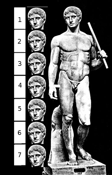 Por ejemplo, los antiguos egipcios (1) formularon la representación del cuerpo humano en base a cuadriculas. En la cultura griega, Policleto formuló “el tratado de proporciones” dividiendo el cuerpo en 7 cabezas, posteriormente se estableció a 8 cabezas por sus predecesores. A finales del siglo XV, encontramos el canon del “Hombre de Vitrubio” por el italiano Leonardo Da Vinci que buscaba describir las proporciones del ser humano perfecto en el cual es el centro del universo, aunque tales proporciones no coinciden con el hombre actual.