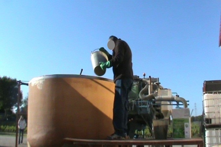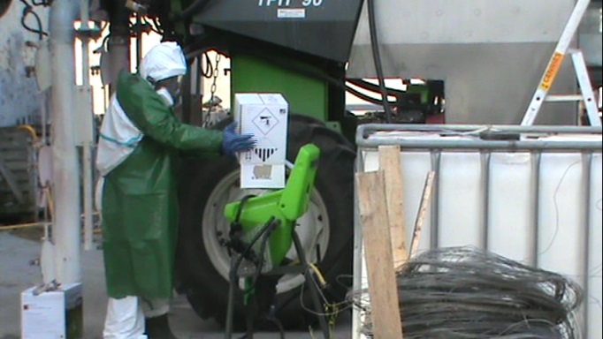 El V3 utiliza una macara simple para polvos a pesar de manipular pesticidas en forma de líquidos que emanan vapores. Según él, “cuando no hay mucho polvo, está bien, pero cuando hay mucho polvo, sí. Es ahí (dónde se forma una nube de polvo), eso se mueve. Pero cuando hay mucho líquido, es tranquilo, es como el agua”. Siendo la presencia de polvo más visible a nuestros ojos, la emanación de vapores lo pasa desapercibido.