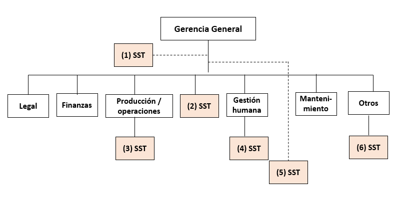 - El “escenario 1” donde el responsable de SST tiene el rol de asesor gerencial.