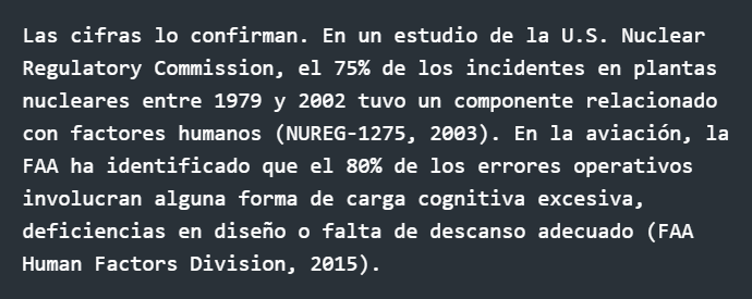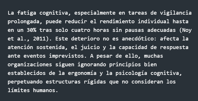 El agotamiento no es una anomalía individual, sino un síntoma estructural. No es el operador quien falla, sino el sistema que lo sobrecarga. Esta perspectiva no es nueva. Desde la década de 1950, pioneros como Alphonse Chapanis y Donald Norman advirtieron que los errores atribuibles al "factor humano" eran en realidad consecuencia de diseños desalineados con la naturaleza humana.