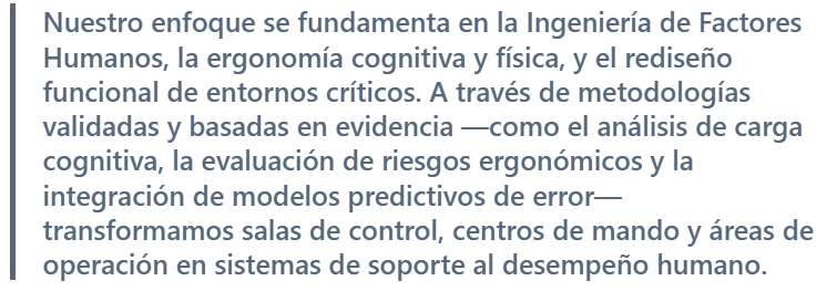 No se trata únicamente de prevenir errores: se trata de valorar, proteger y potenciar a quienes sostienen los sistemas más complejos e indispensables del mundo contemporáneo. En entornos donde el rendimiento humano es determinante, la ergonomía no es un accesorio, sino un principio estructural de la seguridad y el rendimiento.
